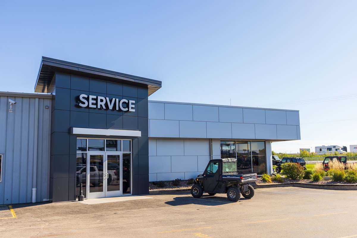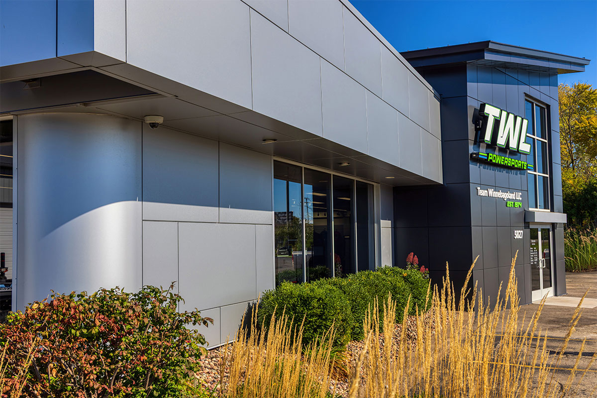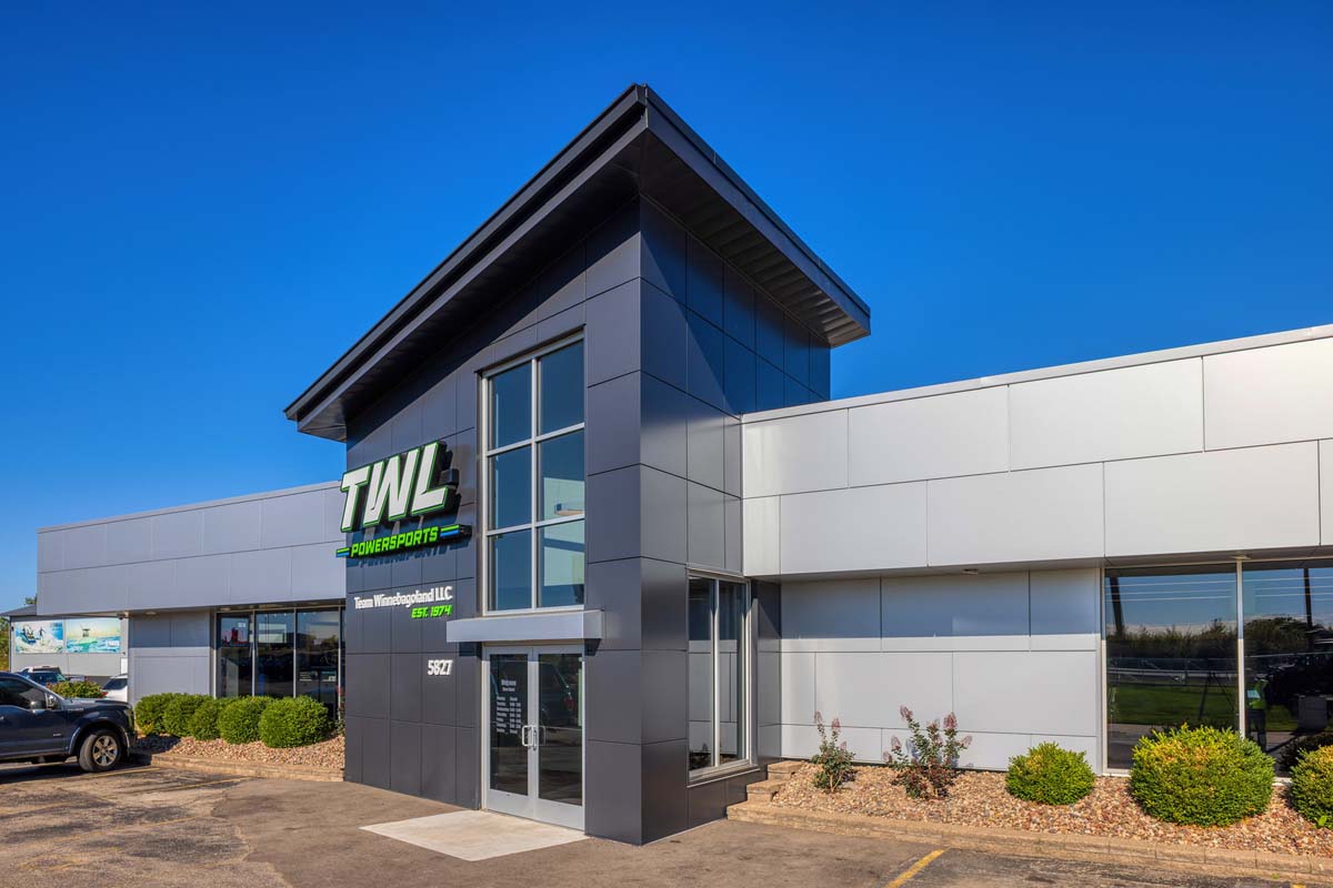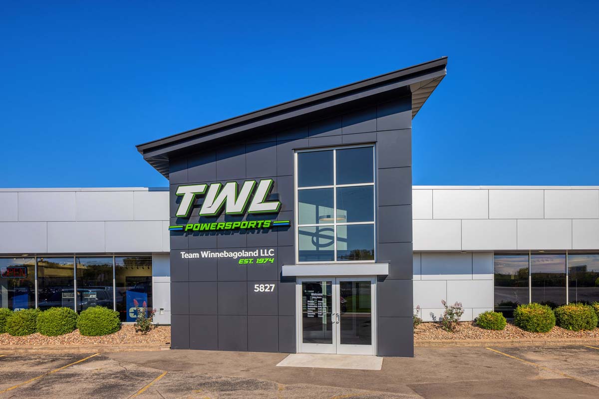 The completed remodel gives Team Winnebagoland a facility that reflects the energy and professionalism of the brand. With durable materials, sharp detailing, and a dramatic entry feature, the building is positioned to make a strong impression for years to come.