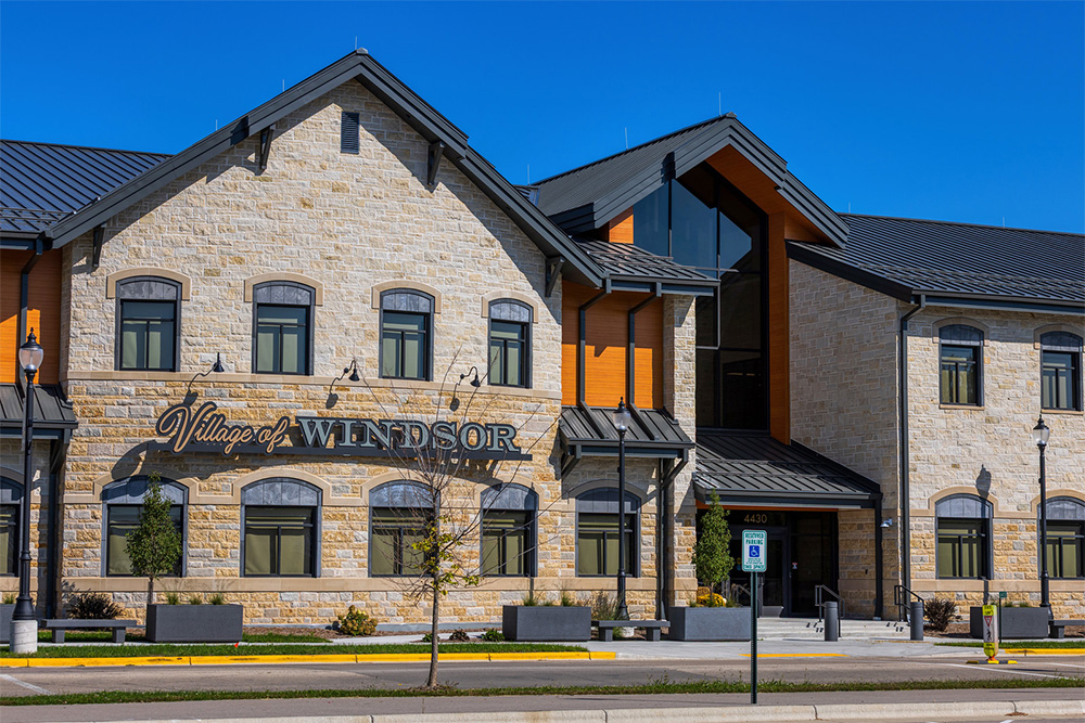 After nearly a decade of planning, the new Village of Windsor Municipal Building has become the centerpiece of the town center, positioned both literally and symbolically at the heart of the community. As Windsor is also home to MUZA’s second location, this project held special meaning for our team. The two-story facility supports Windsor’s revitalization goals and provides new meeting and gathering spaces that residents have described as a true “game-changer.”