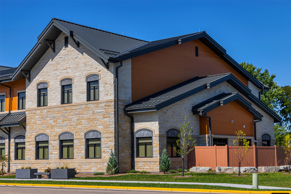 This project required a polished finish across highly visible public-facing details from roof lines to soffits and wood-grain accents. MUZA’s installation expertise helped ensure clean transitions, consistent alignment, and an exterior built to perform through Wisconsin weather year after year.